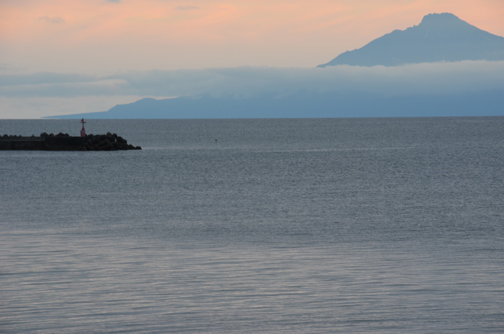 礼文から稚内に戻り、納沙布岬へ。夕日に染まる利尻山は登った身には、一入の思い入れを持って眺めることができた。